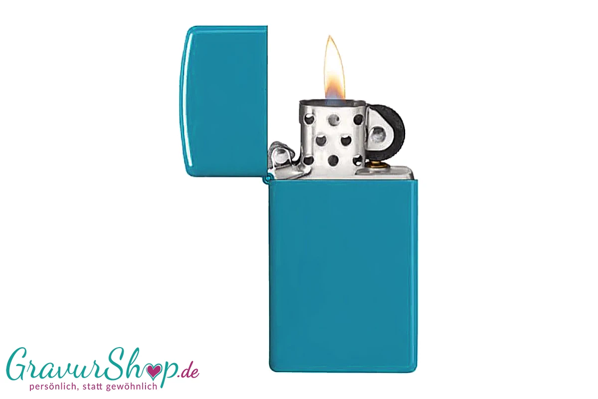 Zippo Slim mit Gravur - Turquiose